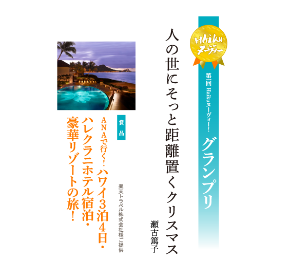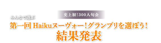 2010年11月30日(火)『Haikuヌーヴォー!』で行われた300人句会。 厳正なる審査の結果、以下の方々が受賞されました!おめでとうございます!